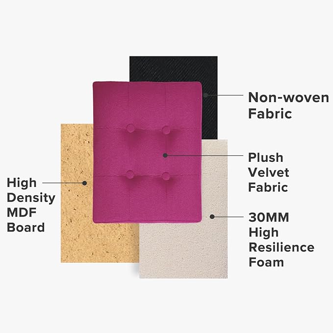 LINMAGCO Storage Ottoman Folding Foot Stool Foot Rest with Side Pocket Modern Ottoman with Storage Short Sofa Stool Linen Cloth 17x13x13(ROSEO)