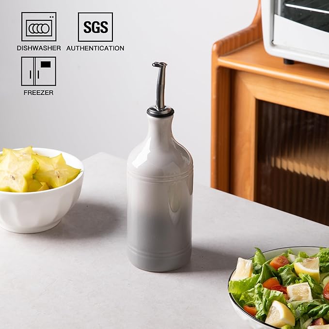 Sweejar Ceramic Olive Oil Dispenser Bottle, Opaque Oil Cruet Protects Oil to Reduce Oxidation, Suitable for Storage Vinegar, Coffee Syrups & Other Liquids, Pack of 1, 15.5 Fl Oz (Gradient Fog Gray)