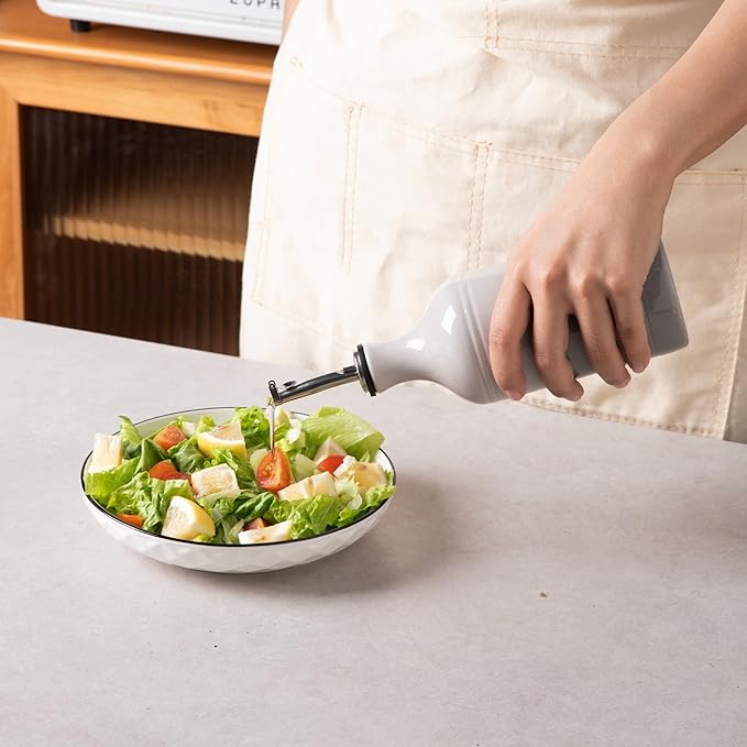 - Leak Proof & Keep Liquid Fresh - The bottle is made of durable ceramic that creates a smooth glaze. And the opaque porcelain bottle protects the oil from light and makes it last longer.