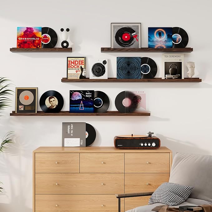 • Picture Ledge Design: Ideal for displaying photos, artwork, small plants, or collectibles, these shelves feature a thoughtful ledge design with a subtle lip and a shallow groove behind it. This design securely holds items in place while maintaining a clean, modern look.
