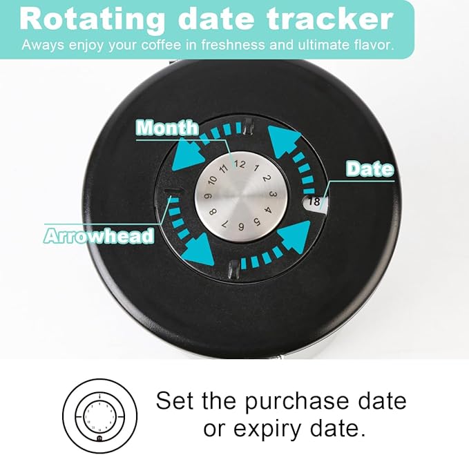 - THOUGHTFUL DESIGN:This cereal containers storage is designed to be very user-friendly, with an adjustable date tracking wheel on the top of the coffee creamer container, so you can check the storage date at any time to understand the storage time. Ensure that your coffee is always fresh and has not expired
