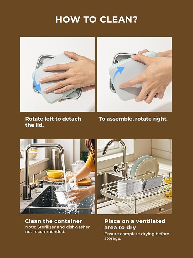 - Easy to Clean, Hand Wash Only: Designed for easy disassembly and cleaning, these air tight storage containers for food are not dishwasher safe. Hand wash only to maintain long-lasting use