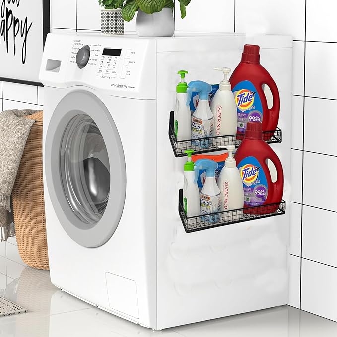 Bruda 2 Pack Large Magnetic Shelves Spice Rack Organizer for Washing Machine, Fridge, Refrigerator, Oven, Coffee Maker, Metal Peg Board 009
