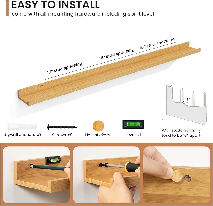 - Effortless Installation: Each shelf comes with pre-drilled holes and all necessary hardware, making installation quick and easy, so you can enjoy your new decor in no time.
