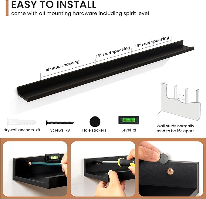 - Effortless Installation: Each shelf comes with pre-drilled holes and all necessary hardware, making installation quick and easy, so you can enjoy your new decor in no time.