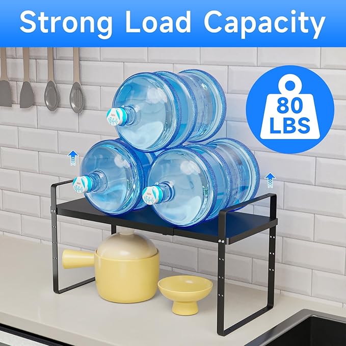 - Flexible Storage Solution: This cabinet shelf is both expandable and stackable, adjusting from 17 to 27 inches in width. Stack multiple shelves to maximize your storage space