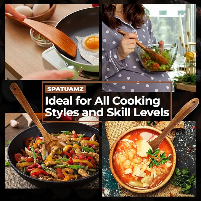 - 【Safe for Nonstick Cookware – Durable & Heat-Resistant】: Our teak wood utensils are perfect for nonstick cookware, preventing scratches or damage to your pans. These utensils are strong, long-lasting, scent-free, and heat-resistant, making them ideal for high-temperature cooking