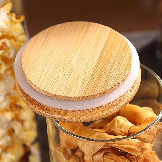 - 【BEYOND GORGEOUS】The glass pantry storage containers made with high-quality thick glass. Farmhouse glass canister will surely enhance your party or home to a beyond beautiful look. Includes wide mouth wood lid with silicone ring for safe and tight seal to keep the food fresh at all time.