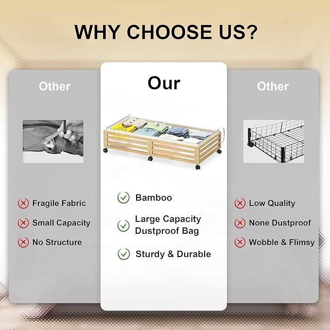 - 【360° Rotating Wheels】Features detachable wheels for easy sliding in and out from under the bed; convenient access in tight spaces