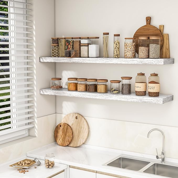 - Multi-scene & Functional: Use as bathroom shelves perfect storage of beauty, hair products or aromatherapy. Mount in the bedroom to hold your books, cosmetics and personal privacy things. Mount in the kitchen to hold spices and jars. Or as a display shelf mount in the living room to show your picture frames, trophies or favorite collection. Use as book shelf for wall, over the toilet shelf, kitchen floating shelves, wall shelves for living room, display shelf, and more
