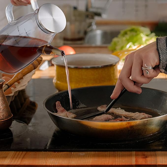 - 【Easy to clean】Wide opening oil dispenser for kitchen allows your hands to easily reach the bottom, making it easy to clean the inside of the pitcher. Dishwasher safe. Easy single-handed use, eagle shape spout makes the oil flow evenly.Big handle for a comfortable grip. The perfect size is great for your dinner table or picnic.