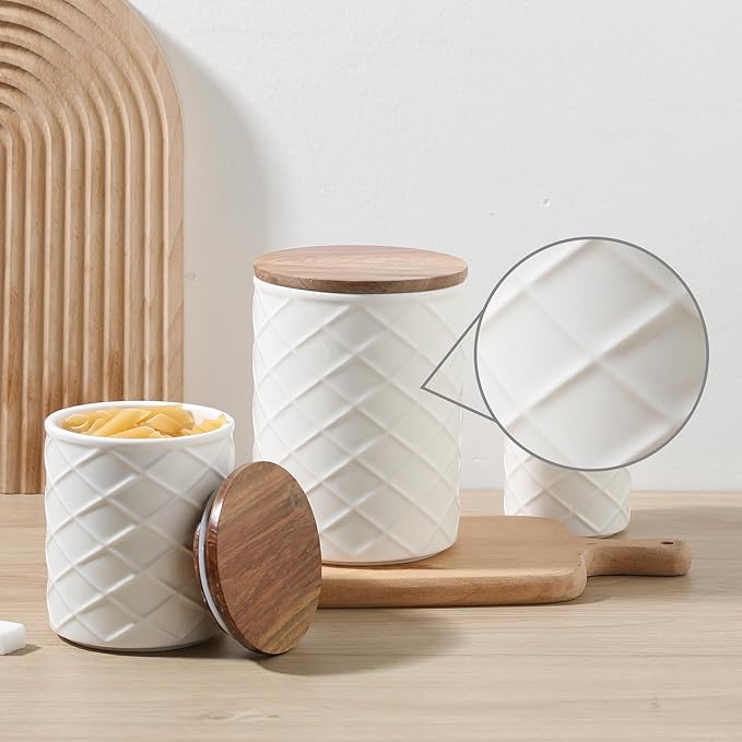 - MULTIPLE FUNCTION - The canisters not only for food storage, at same time for exquisite desktop decoration, the jar container can be used as vase, baking containers storage set, utensil...So this ceramic canisters with lids also super practical gift in the housewarming, birthday, wedding, Christmas, Anniversary...
