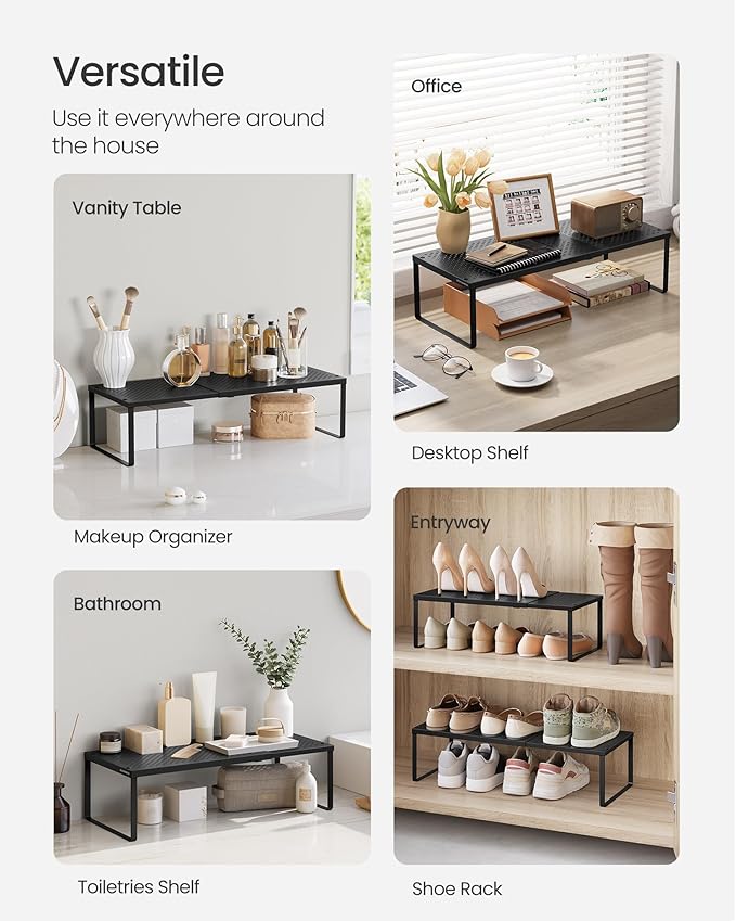 - 【VERSATILE】Place this cupboard shelf in kitchen cabinets or on countertops to store kitchen utensils, in the study to house office utensils and decorations, or in the entryway to keep your shoes off the floor