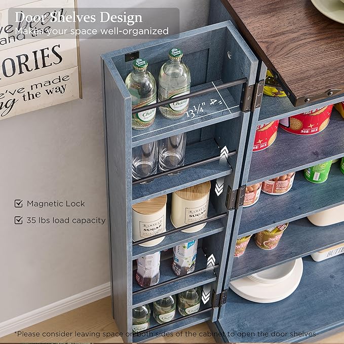 ACCOHOHO 47" Kitchen Pantry, Farmhouse Storage Cabinet with Barn Doors, Organizer and Adjustable Shelves, Rustic Wood Cupboard for Kitchen, Dining Room, Bathroom and Hallway, Rustic Blue