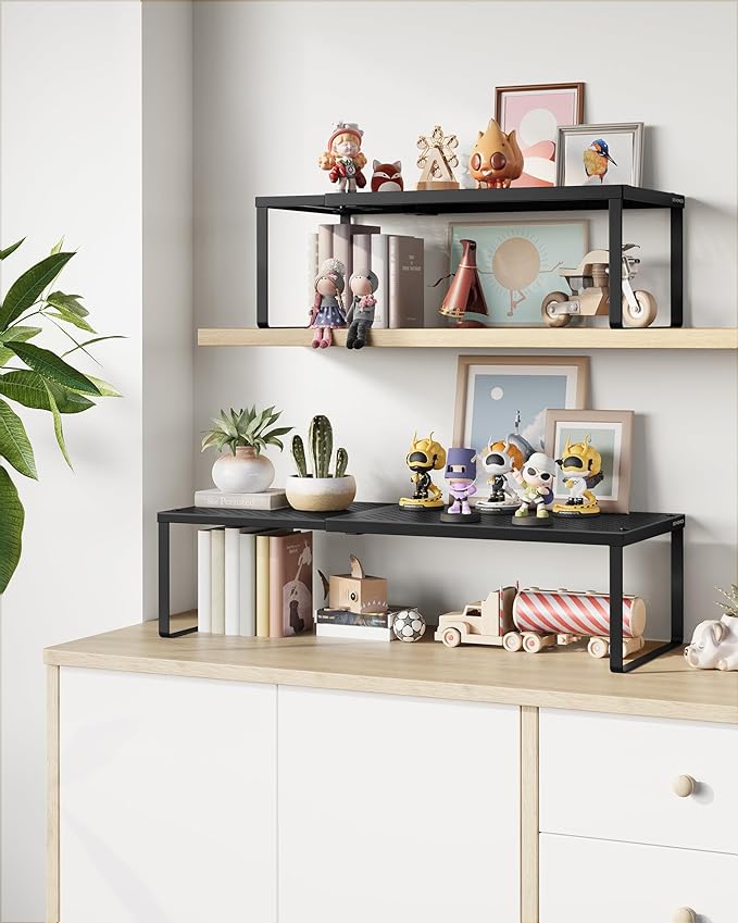- 【VERSATILE】Place these cupboard shelves in kitchen cabinets or on countertops to store kitchen utensils, in the study to house office utensils and decorations, or in the entryway to keep your shoes off the floor