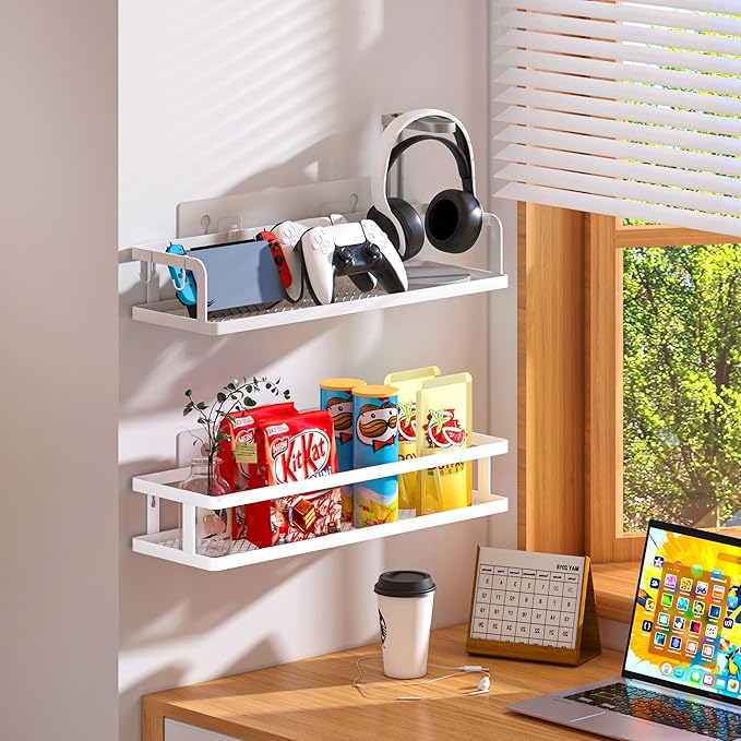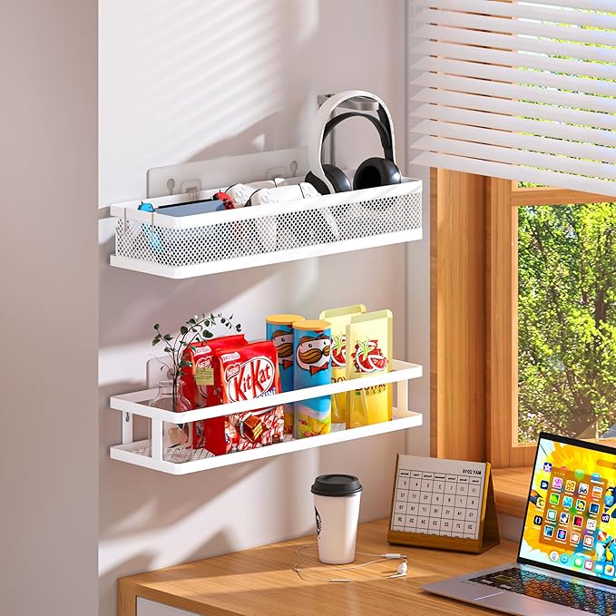 PUSDON Metal Wall Hanging Basket 2 Packs DIY Suitable for Multiple Scenes - Large White Guardrail