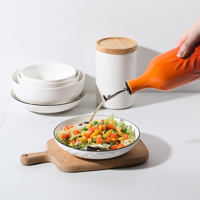 Sweejar Ceramic Olive Oil Dispenser Bottle, 24 Oz Relief Opaque Oil Cruet Protects To Reduce Oxidation, Suitable for Storage Soy Sauce, Coffee Syrup, Liquids, Set of 1 (Gradient Orange)