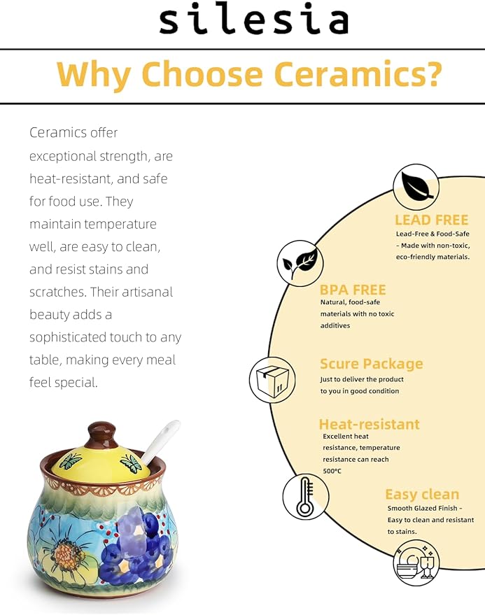 - Convenient Ceramic Spoon: The set includes a matching ceramic spoon,The spoon fits neatly into a small slot on the lid, ensuring easy access while keeping everything organized. Perfect for scooping sugar, salt, or other condiments without mess
