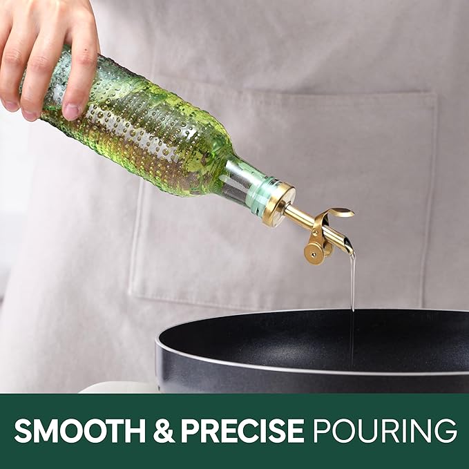 - Beautiful and Functional - Our colored glass oil dispensing bottles, with elegeant colors, gold tops and gold wire rack, will elevate your kitchen. Don't use just any oil bottle, upgrade the way you cook. That's our mission.