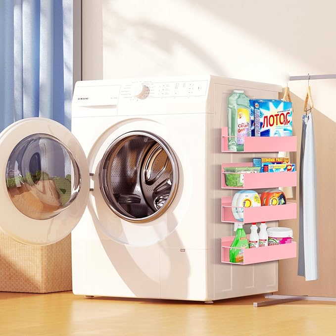 Magnetic Spice Rack Organizer for Fridge Seasoning Organizer for Kitchen Storage With Screw Magnetic Shelf for Oven, RV,Garage,Bathroom (Pink, 4pack)
