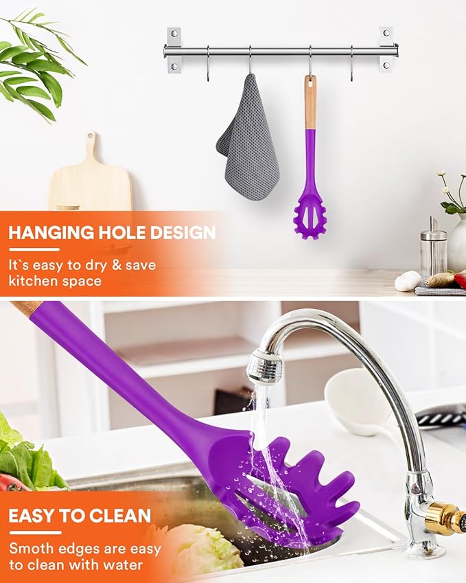 - Just Want To Provide The Best For You : The soft food-grade silicone head is designed for noise-free cooking. Unique sawtooth design, easy to pick up noodles. Whether it is used for stirring or serving spaghetti. Our silicone pasta fork will add more fun to your kitchen
