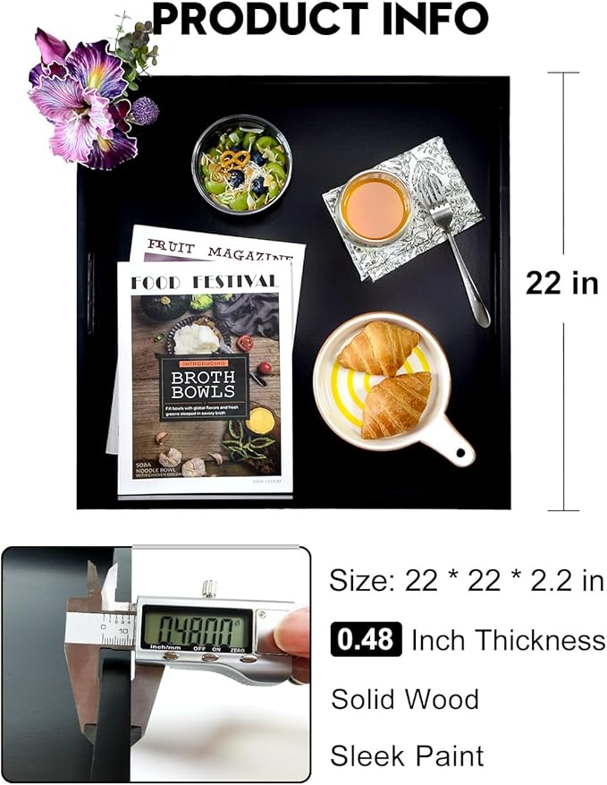 - 22 INCH OTTOMAN TRAY - This extra large serving tray is perfect for a variety of uses. Measuring 22" x 22" x 2.2", it’s ideal for serving drinks on the coffee table, organizing items on your couch, or using it in the kitchen. This stylish tray combines both functionality and aesthetic appeal to enhance your home.