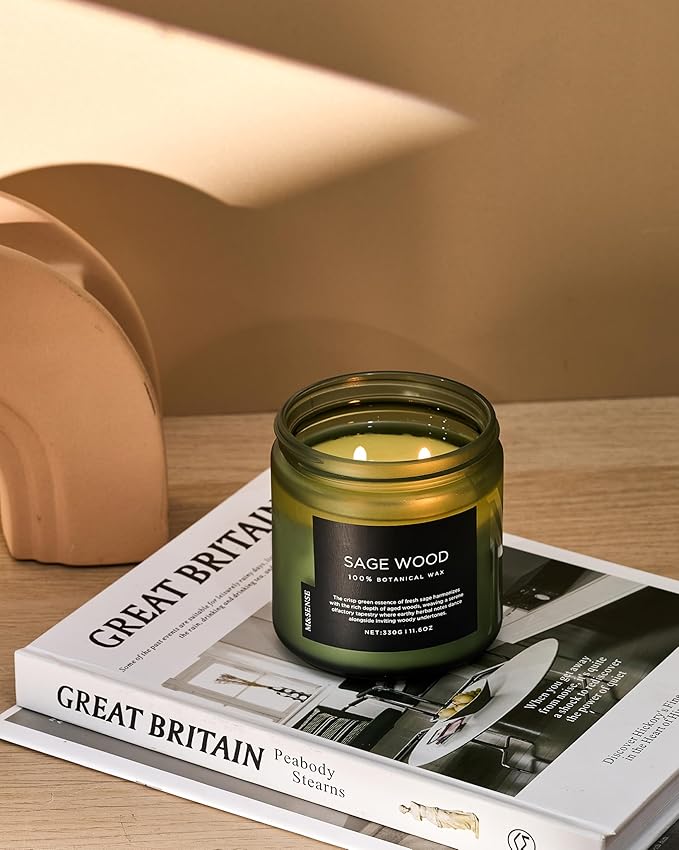 M&SENSE Sage Wood Scented Candle, 11.6oz 70 Hours Long Lasting Clean Non Toxic All Natural Soy Wax Candle for Relaxing & Stress Relief, 2 Wick Home Fragrance Gifts for Home Decor