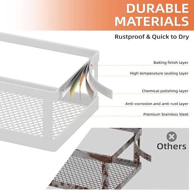 - Premium Metal Material and Stable Storage: The spice rack wall mounted is made of thickened high-strength carbon steel,is waterproof, rustproof, easy to clean.Our spice rack comes with additional 2.37-3.15 inch side guards and reinforced adhesive stickers to ensure safety and stability.