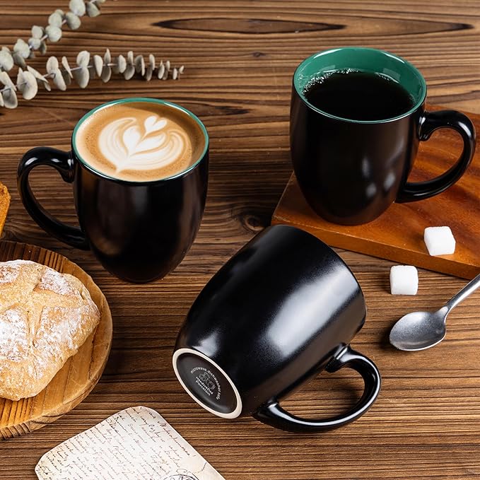 - Comfortable Grip & Sleek Matte Black Style: Featuring an ergonomic, easy-grip handle for a secure hold and a smooth rim for enjoyable sipping. The modern matte black exterior adds elegant style to any table, while the wide, stable base prevents spills.