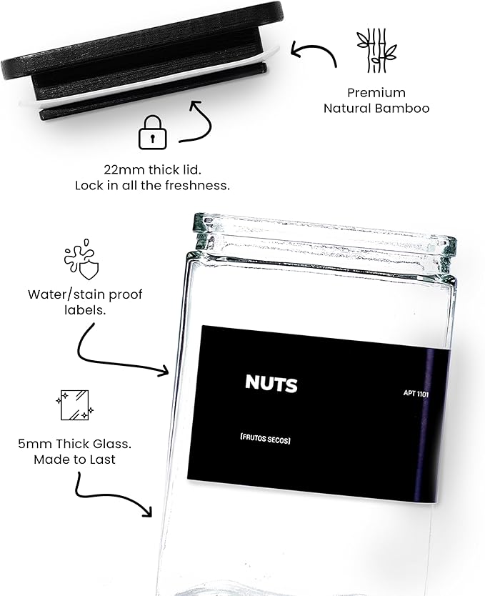 - 【Eco-Friendly & Airtight Freshness】Bamboo lids with silicone sealing rings create an airtight barrier, locking in freshness for dry goods like coffee, spices, or cereals. Made from non-toxic, food-safe thick glass and natural bamboo, these jars resist odors, stains, and thermal shock.