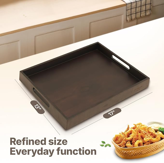 - [BUILT-IN HANDLES]: Serving has never been easier with integrated handles that make it simple to carry from the kitchen to the table. Whether you're serving breakfast in bed, snacks for a party, or drinks on the patio, this tray provides a steady, comfortable grip.