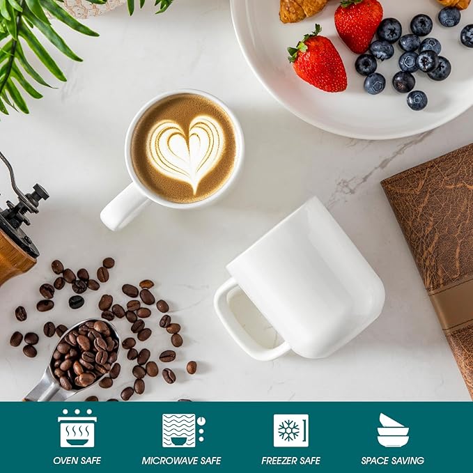 vancasso Porcelain Coffee Mugs Set, 12 oz Ceramic Coffee Cups for Latte Hot Tea Cappuccino Cocoa Milk Cups Set of 6, Dishwasher & Microwave Safe, White