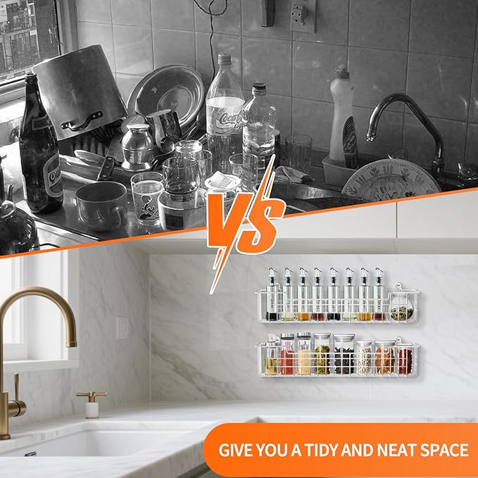 - Versatile Wall Spice Rack: Perfect for kitchens, bedrooms, bathrooms, or RVs. This space-saving spice shelf adds stylish storage anywhere while keeping essentials within reach