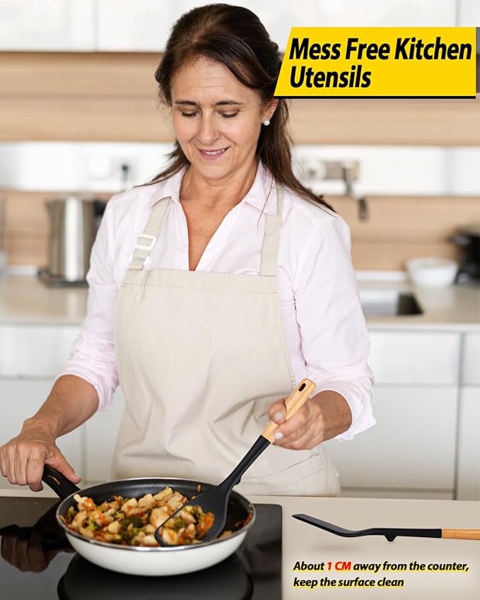 - Thoughtful Design: The little bulge design prevents the silicone head from touching the cooktop after cooking, effectively keeping the surface clean;Wooden handle keeps you away from the trouble of kitchen utensils rusting or breaking