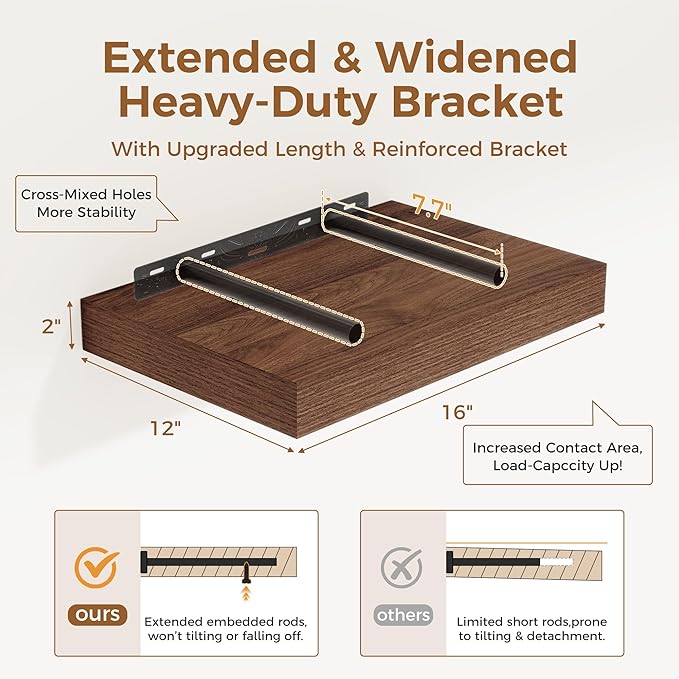 - Special Feature : 12 Inch Deep, 2 Inch Thick, Invisible Heavy-Duty Bracket, Large Storage & Display Space, Wall Mounted Shelves 12 Inch Deep, 2 Inch Thick, Invisible Heavy-Duty Bracket, Large Storage & Display Space, Wall Mounted Shelves