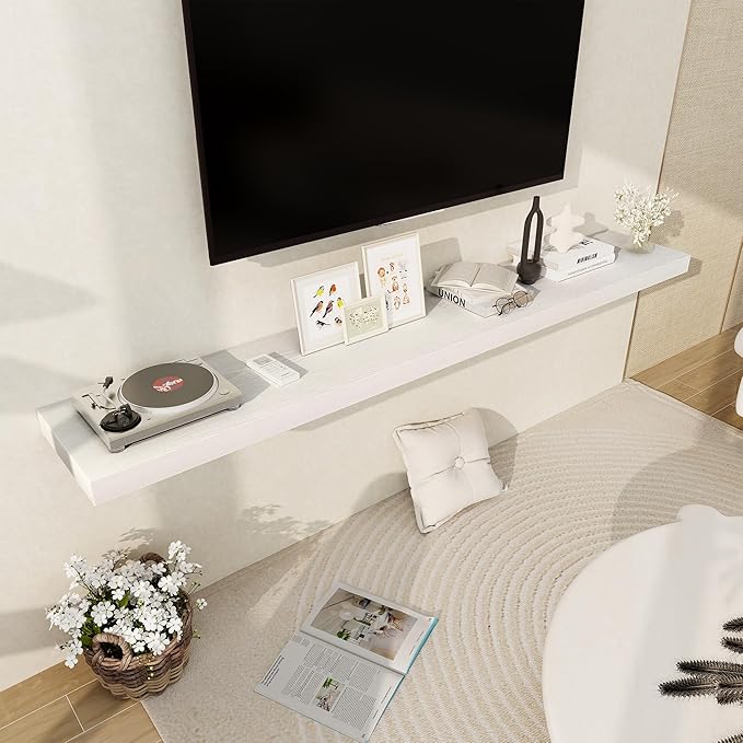 Fun Memories 72 Inch Floating Shelf, 12 Inch Deep Wall Shelf for Fireplace Mantel, Deep Storage Shelves for Home & Office, Wall Shelves with Invisible Bracket, White, Set of 1