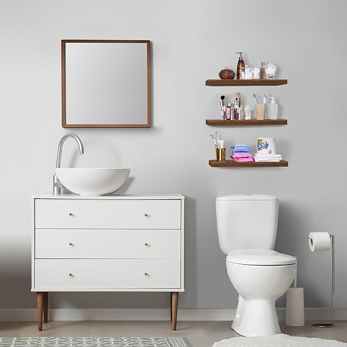 Sorbus Floating Shelves for Wall, Bathroom Shelves Wall Mounted for Kitchen, Bedroom, Bathroom Storage Over Toilet, Hanging Book Shelf for Wall Home Decor Living Room (Walnut, 3 Pack)