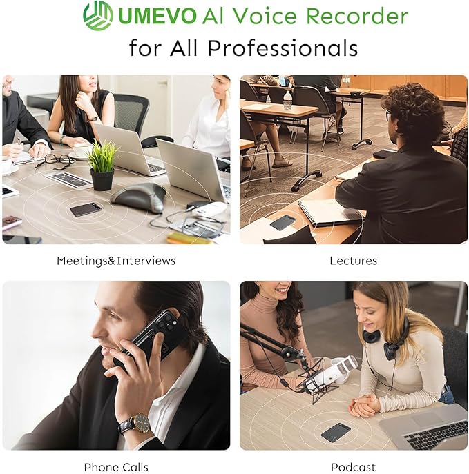 - Two modes for Precise Recording: The UME UMEVO voice recorder seamlessly switches between phone call recording and live recording modes with a simple slide button. AI noise reduction technology ensures crystal-clear call recordings. No complicated setup required—one-touch recording meets all your business (meetings, interviews) and daily call recording needs